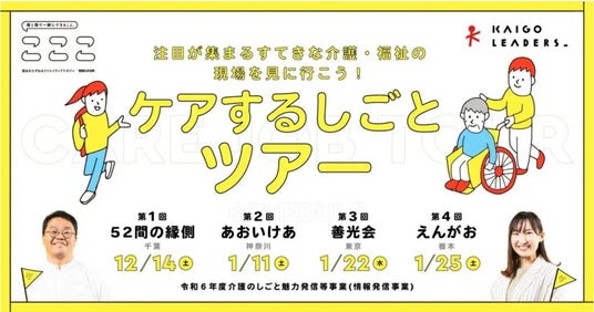 介護・福祉の仕事に興味があっても未経験だと難しいと思っている人も多いのではないでしょうか。注目が集まる介護・福祉の現場へ出向き、実際の仕事内容や、「ケアするしごと」のやりがい、魅力、リアルな姿に触れてみるツアー企画です。「KAIGO LEADERS」発起人であり、株式会社Blanket代表の秋本可愛さんと、「KAIGO LEADERS」のコミュニティマネージャーがナビゲートします。
